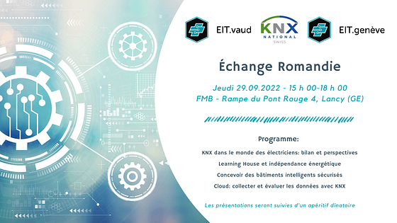 KNX Swiss, EIT.genève et EIT.vaud invitent leurs membres et les personnes intéressés au premier échange régional «Energie et automation du bâtiment» de la Suisse romande.